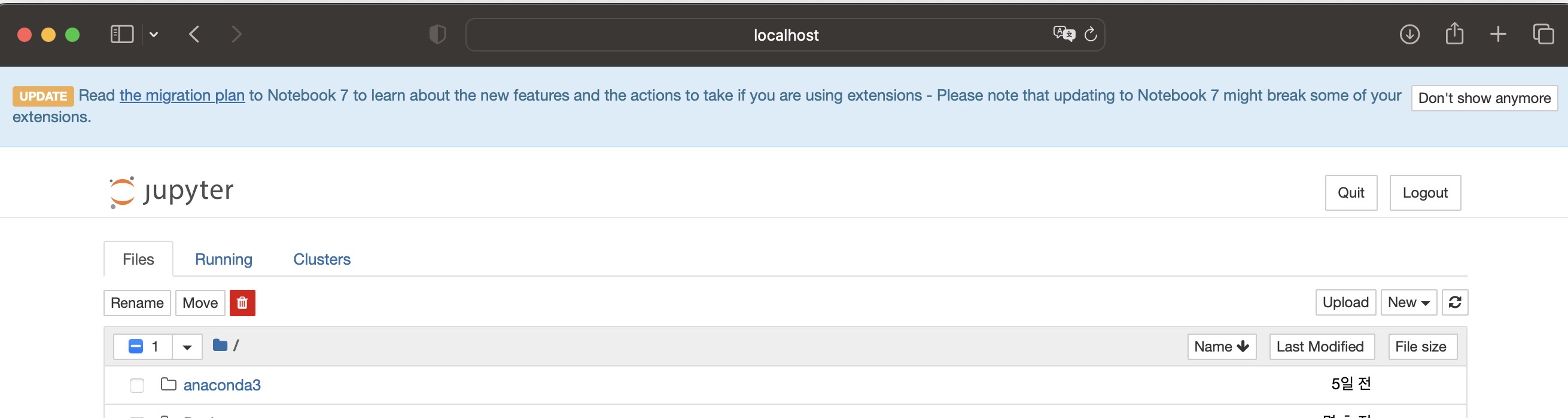 주피터 노트북 화면이 잘 실행된 것을 볼 수 있다.