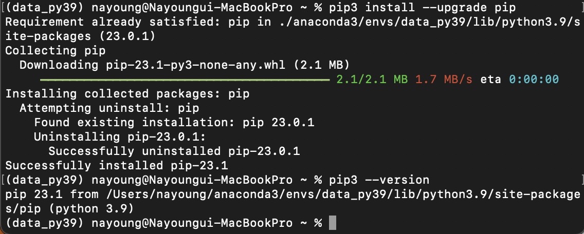 내 가상환경에 설치된 파이썬은 python3버전이므로 나는 pip3를 이용하였다.