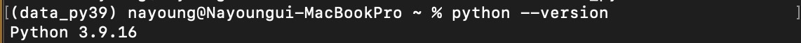이전에 만들어둔 가상환경 data_py39가 잘 활성화되었다.