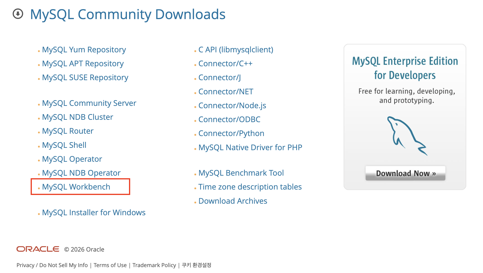 아직 끝난게 아니다. Workbench 설치가 남았다. 이대로도 터미널에서 사용할 수 있지만, GUI도구인 MySQL Workbench를 설치해서 좀 더 편리하게 사용하자.
