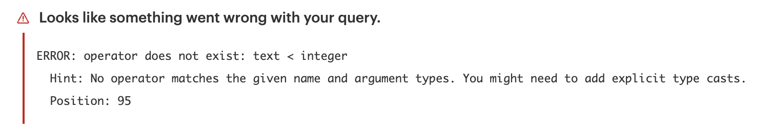 아래와 같은 에러가 떴다. (Looks like something went wrong with your query.)